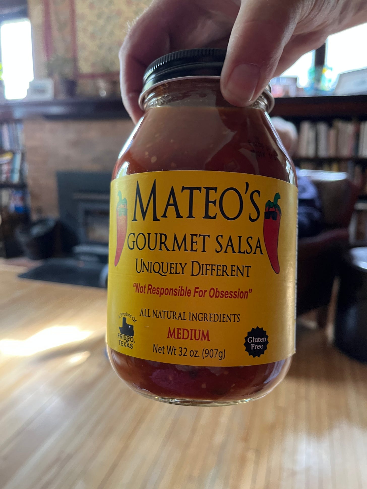 The special treat of the evening is that our son found a salsa that is made without onions (my deadly nemesis) that is spicy and delicious. We brought back two hefty quart jars of it, only to discover our local Publix carries it. Who knew?