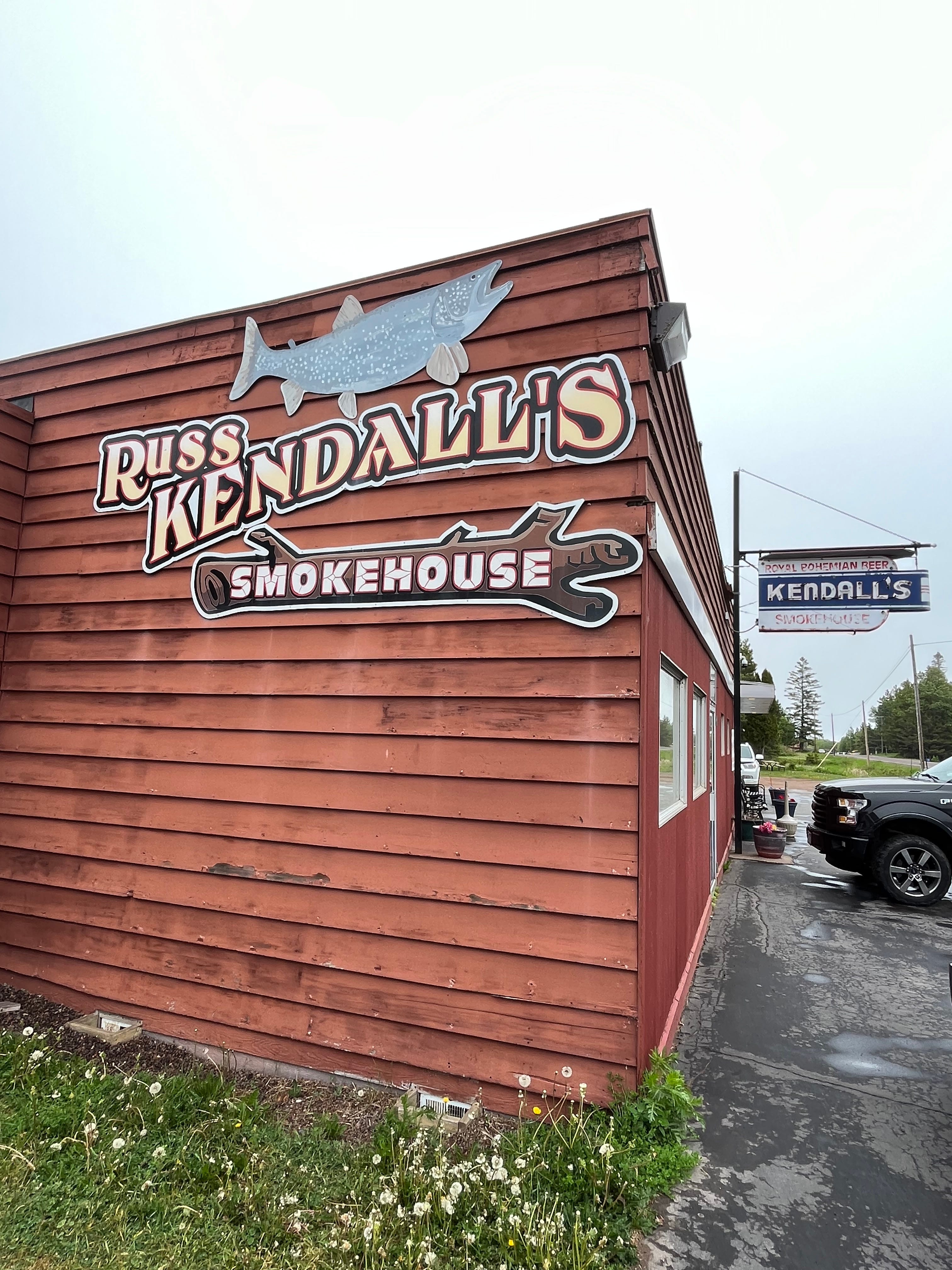 While others went shopping at the mall, Tom and I took a leisurely drive up the North Shore of Lake Superior, stopping at Russ Kendalls’s Smokehouse. We had to resist buying his delicious smoked fish as we were leaving the next day, but we did get a bit of Wisconsin smoked cheese to enjoy.