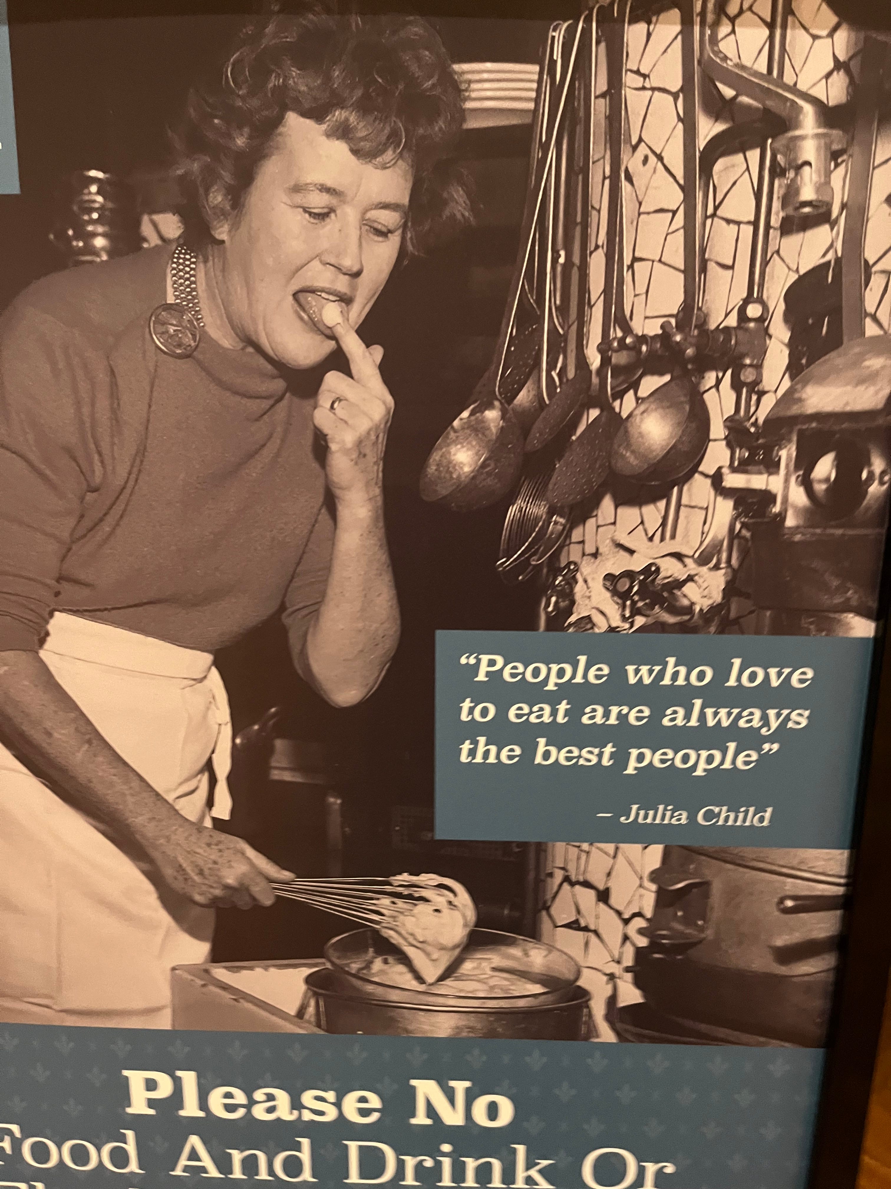 I found it humorous that Julia’s quote about food was posted right above a sign forbidding food and drink in the exhibit.